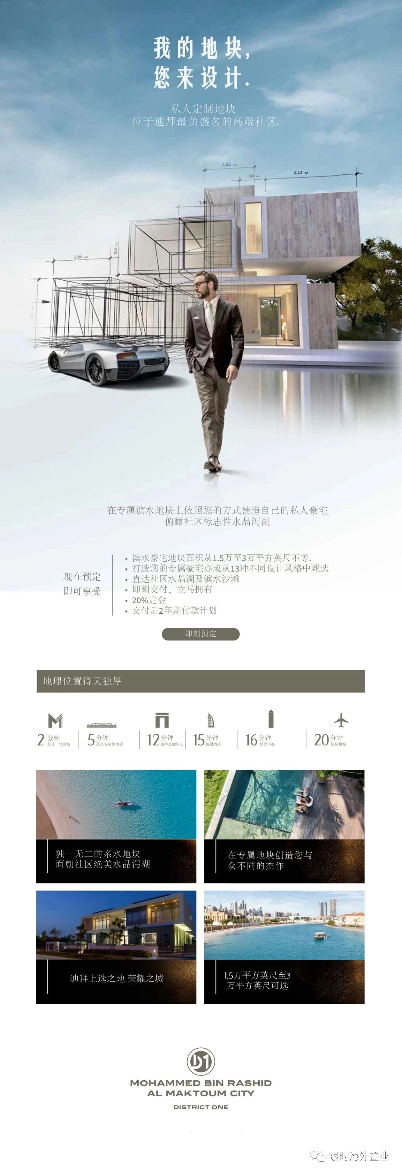 迪拜酋长城一区,水晶湖畔,私人定制地块出售