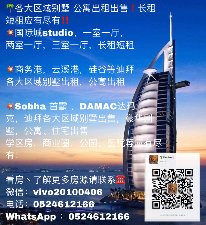【联系我时,请说是在迪拜全酋通华人网看到的,谢谢! 小贴士:本平台信息由网友自行发布,平台仅提供便民平台,信息真实性由发布人负责,本平台不承担任何责任,请仔细甄别。如遇无效、虚假、诈骗信息,每一个信息标题下方都含有举报按钮,请点击举报或联系客服】