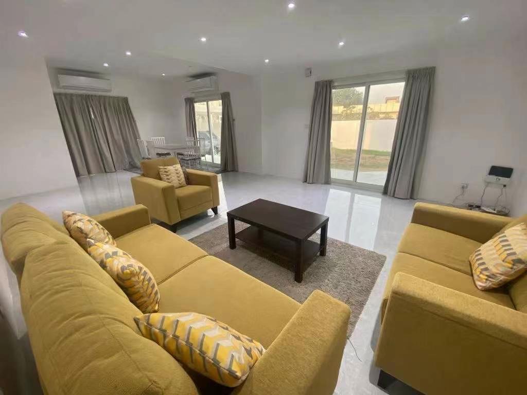 出租Wadi Al Saba,离国际城很近 全新现代风独栋别墅5房保姆房,2个厨房,客厅,会客厅,水电已开通,年租金46万迪