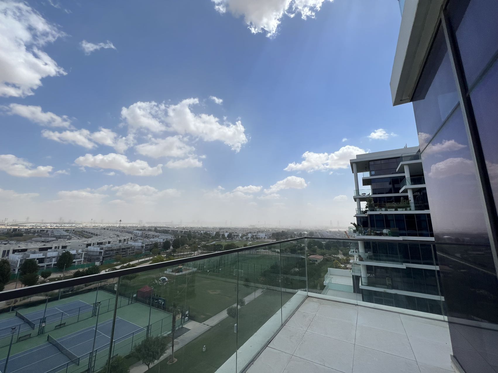 下楼就是网球场、排球场、篮球场、泳池、健身房、高尔夫公园、马场