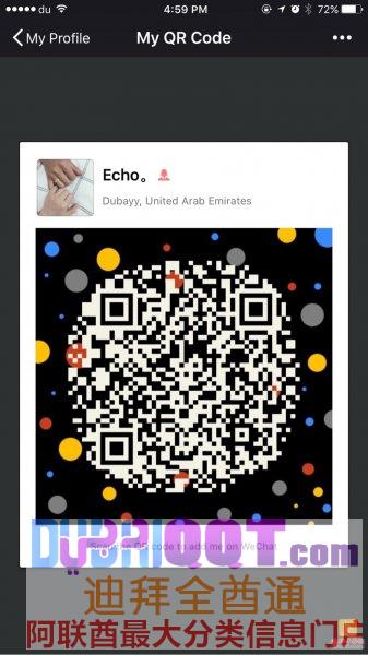 【联系我时,请说是在迪拜全酋通华人网看到的,谢谢! 小贴士:本平台信息由网友自行发布,平台仅提供便民平台,信息真实性由发布人负责,本平台不承担任何责任,请仔细甄别。如遇无效、虚假、诈骗信息,每一个信息标题下方都含有举报按钮,请点击举报或联系客服】