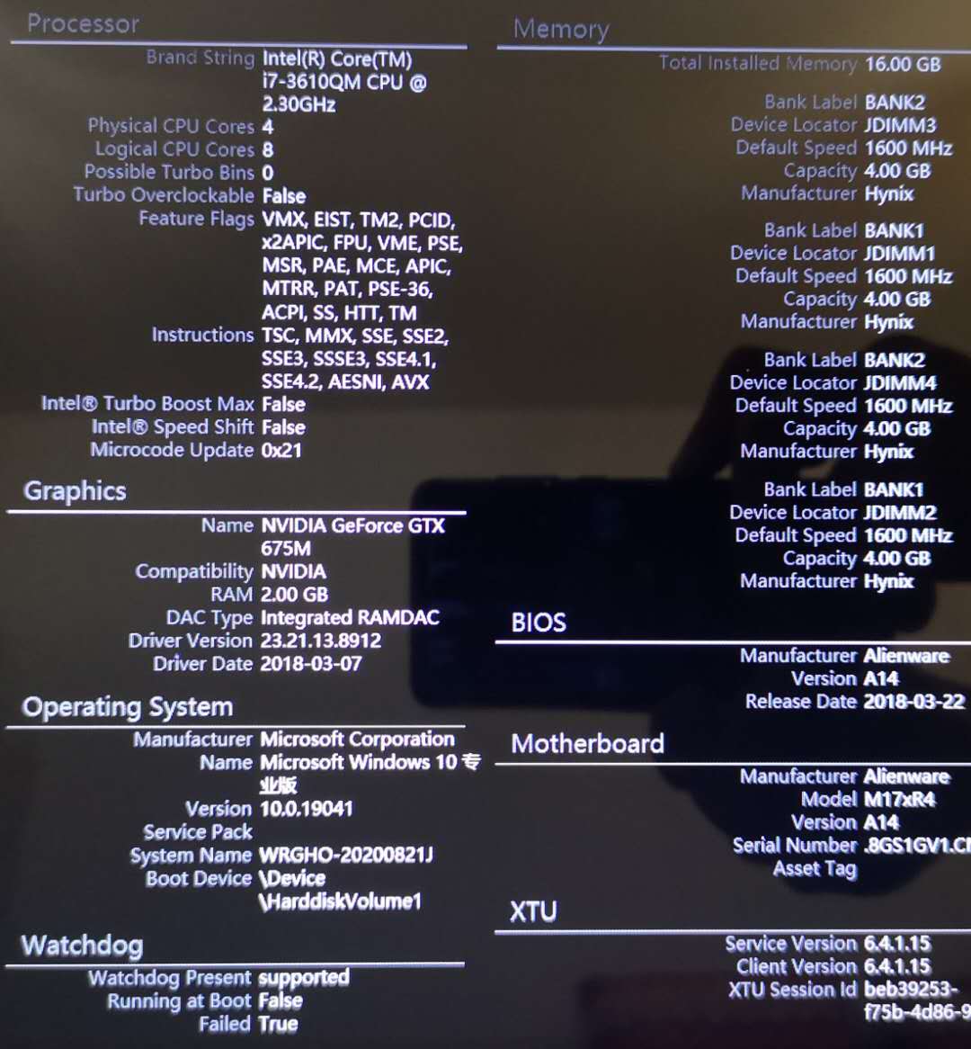 自用外星人17xR4游戏本 i7-3610QM 2.30GH