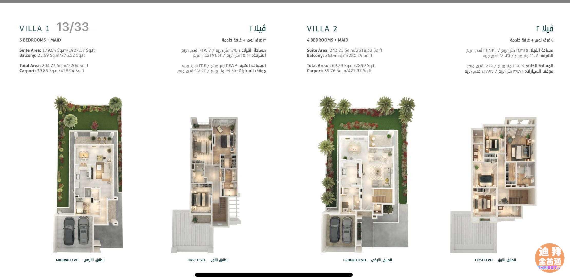 4 房+保姆间户型:161万迪拉姆起售