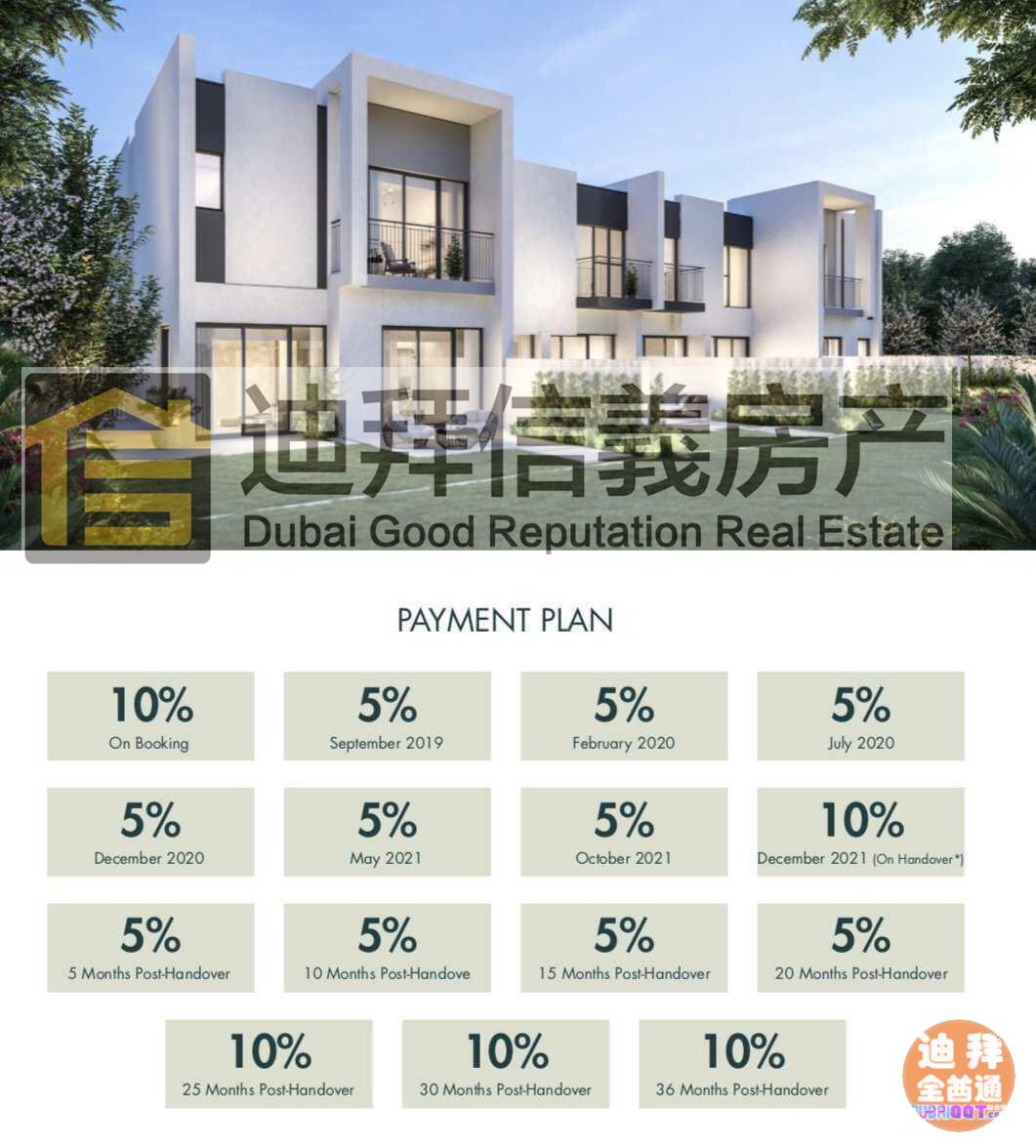 迪拜性价比较高的联排别墅项目,首付只要12.7万迪拉姆 永久产权。精装修,赠送两个停车位。并配有独立的私人花园。