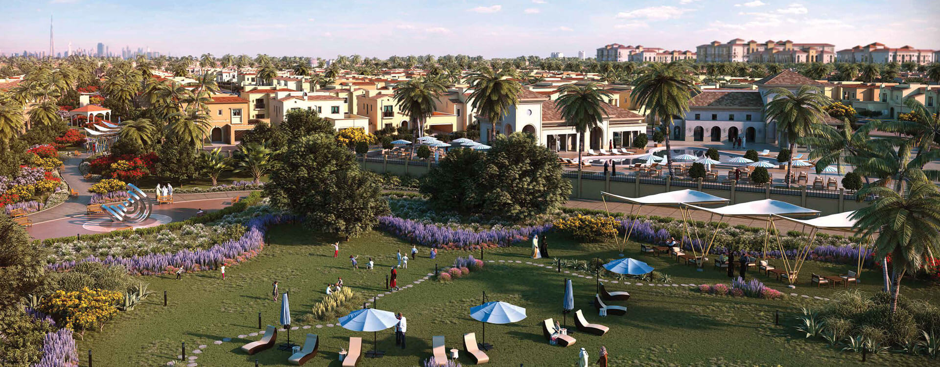 迪拜国有开发商DP大型别墅社区三房联排别墅仅售127万迪拉姆起;地处大型别墅社区绿化好,配套设施一流;