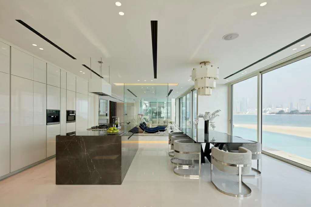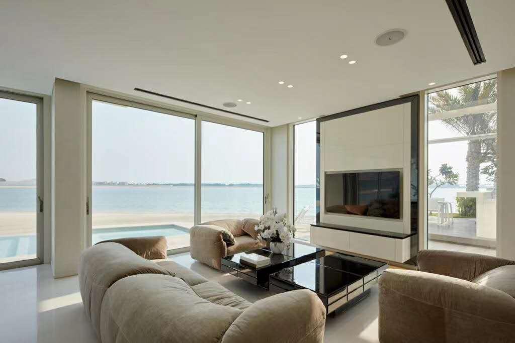总共三层:棕榈岛**豪宅私人别墅,180度无死角海景房,全现代风大落地窗,带私人电影院+健身房。