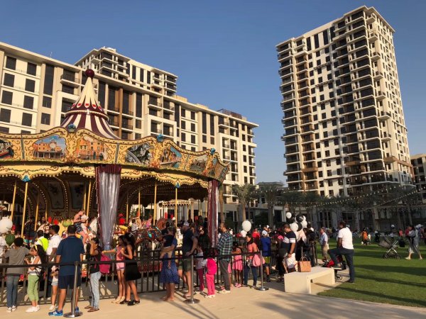 总面积约432亩、15个社区公园、2所医院、2所国际学校和一所小学、10公里跑道和自行车道、8000平方米的篮球场和滑冰场、500多家商店,Emaar管理的星际酒店和电影院等.