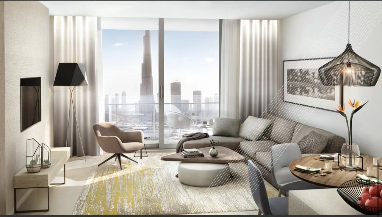 ❷市中心**酒店公寓,全套家私家具,高楼层2居,面积1185平尺,290多万出售,链接Dubai Mall ,可长租可短租值得入手