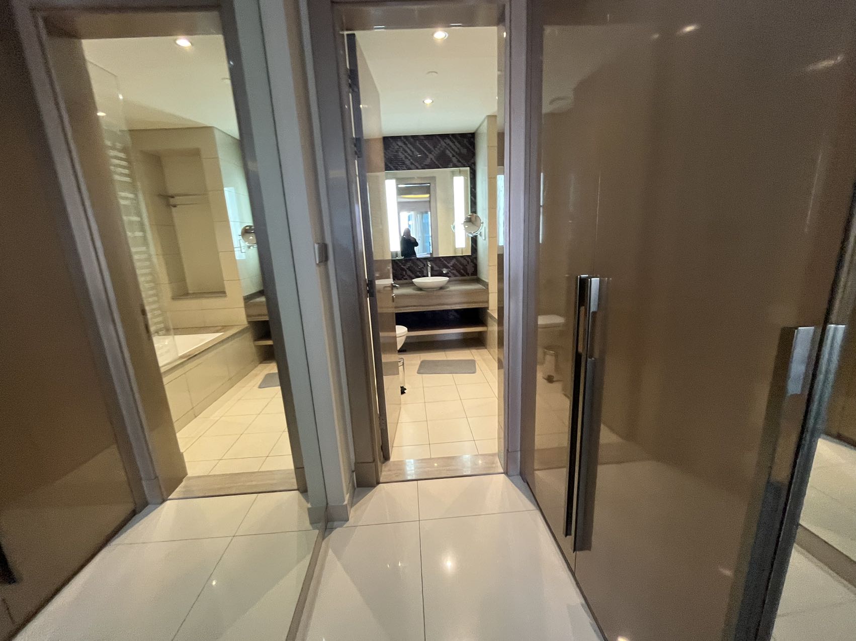 * 落地窗,大理石地板和内置衣柜