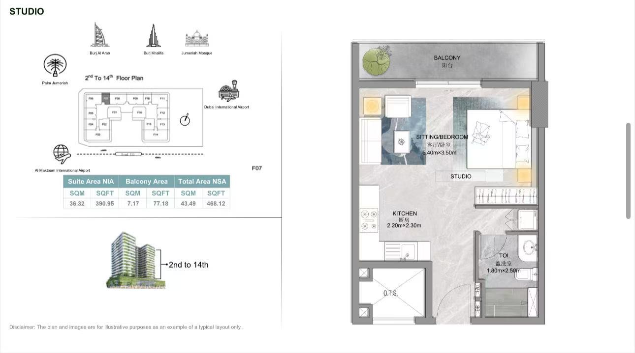 面积:43平米