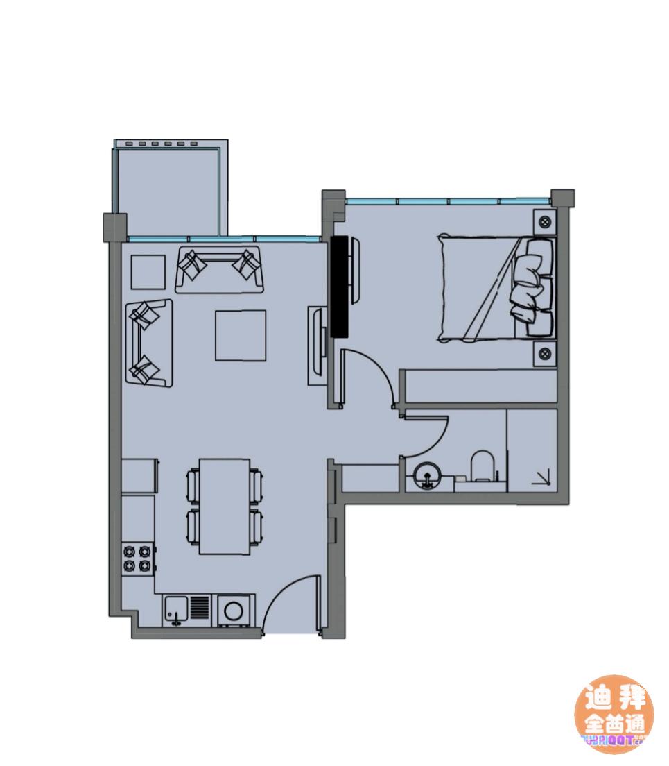 各户型售价为 STUDIO 58.9万迪拉姆,一室85.3万,俩室131万,三室169.3万