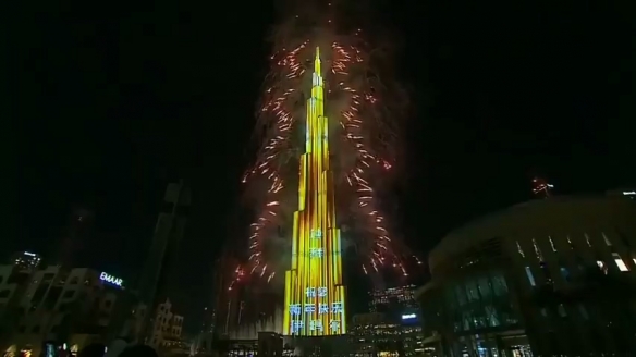 迪拜世界最高塔用中文送新年祝福 烟火秀视效惊艳!