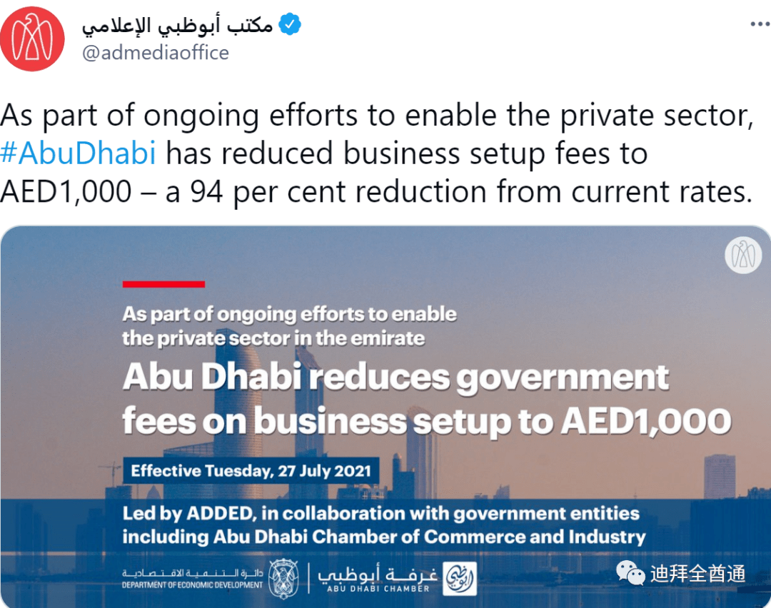 阿布扎比将企业设立费降至1000迪拉姆,为微中小企业创造更加