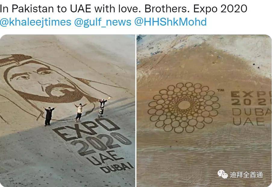 2020迪拜世博会:3人在巴基斯坦海滩做沙画向谢赫穆罕默德致