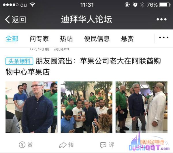 苹果CEO好忙:走完中国、印度现在轮到阿联酋迪拜了