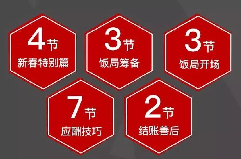 于是这一次,姜老师带着自己10年的研究经验,将玩转中国式饭局社交的核心能力总结出了一套小白也能跟着操作的21节中国式饭局社交方法论,用生动形象的生活案例,带你揭露饭局酒桌上的常见套路。