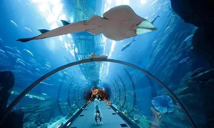 除奢华极致的购物环境外,休闲娱乐项目也是一大亮点。横跨购物中心三层高度且获得吉尼斯世界纪录认证的水族馆和水下动物园(Dubai Aquarium and Underwater Zoo),有超过三万只海洋动物,世界规模最大的虎头鲨群在这里安家,48米长的水底玻璃隧道供游客与海洋生物亲密互动,漫步隧道中,抬头可见湛蓝清澈的海水和悠闲游动的鲨鱼,尽享神秘海洋的无限魅力。