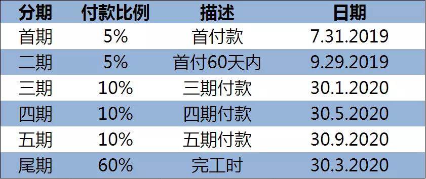 售价及付款计划