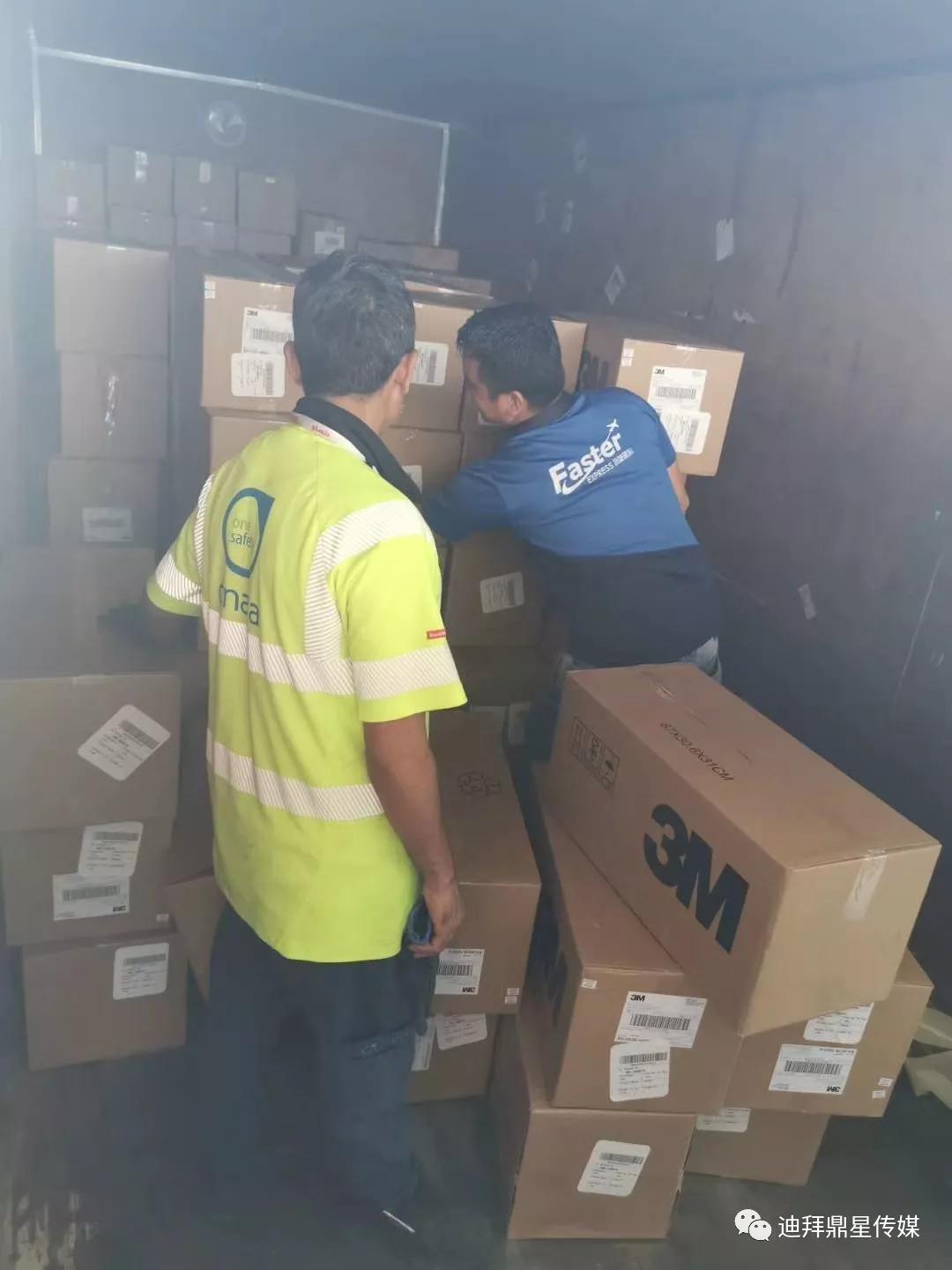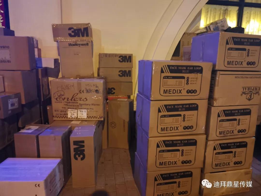 迪拜鼎星传媒1月28日消息:今天下午2点由阿联酋华侨董姐及其孩子(用全部压岁钱购买物资)共捐赠的10万个外科口罩、1万个N95、2万个医用帽子及手套已分批交付物流公司,航班运至中国后会继续转运武汉,直达疫区人民手中!