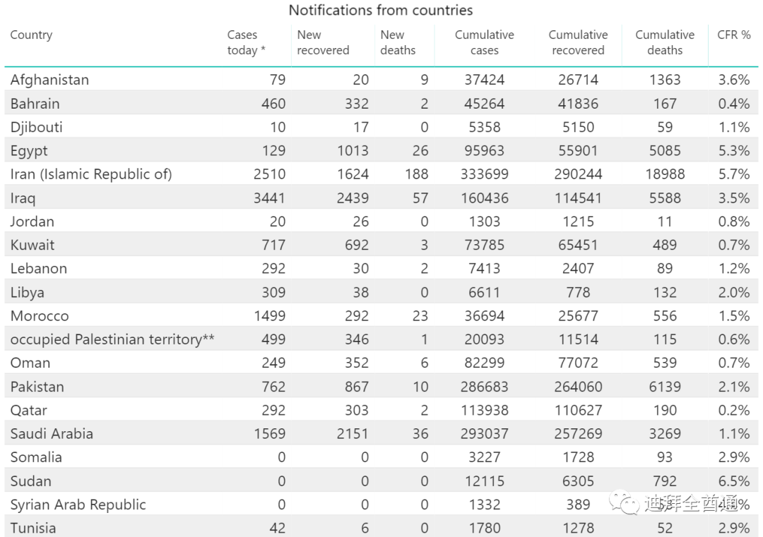 中东各国数据每日更新