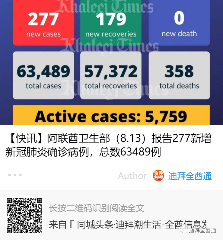 阿联酋简报8.13:新增确诊277例;上海、广州新增境外输入