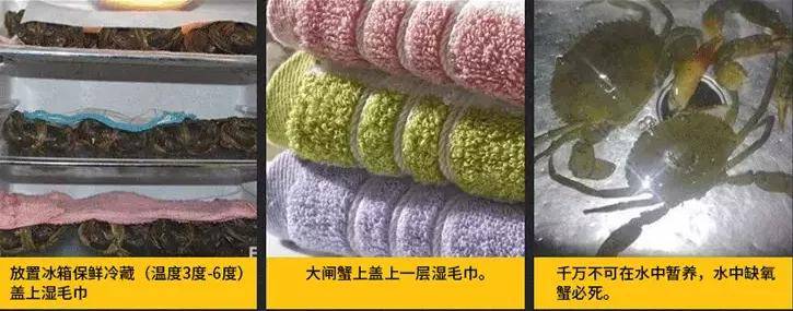 2、大闸蟹正确的存储方式是放冰箱保鲜冷藏(温度4~8摄氏度),盖上湿毛巾,每天撒2次水。