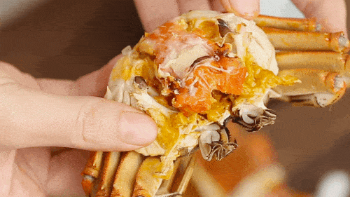 轻轻咀嚼,丰厚的脂膏和蟹黄顺着喉咙往下走,超级满足哇!!
