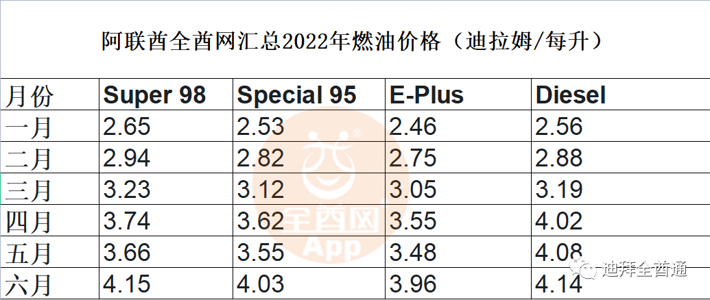 自阿联酋于 2015 年 8 月实施燃油价格放松管制以来,油价首次突破 4 迪拉姆大关。 与 2022 年 1 月 Super 98 每升 2.65 迪拉姆的价格相比,该国的燃油价格上涨了 56% 以上。在欧盟同意在乌克兰战争后禁止从俄罗斯进口石油后,本周早些时候油价飙升至每桶 124 美元以上。 Ava Trade 首席市场分析师 Naeem Aslam 表示,由于欧盟对俄罗斯石油禁运的消息,油价继续走高。全酋网APP全酋网